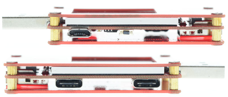 基於ZY1270新增雙USB Type-C插座,可以測試Type-C及USB PD裝置的電壓電流,以及測試Type-C和Micro USB線路阻抗,USB 2.0大電流插頭/插座,取消充電加速功能,插座埋入表體減少厚度,可以測試華為5V 5A