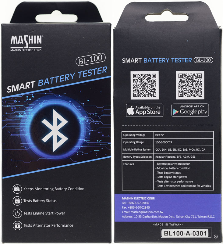 目前車輛使用越來越多電子系統,對於供電穩定性越來越要求,加上新款車輛為了省油節能,撘載了怠速熄火以及充電制御功能,這些對於車上所使用的12V啟動電池都具有相當程度的考驗,使用者要如何對車上電池的狀況進行監控及診斷呢?MASHIN麻新電子推出一款BL-100藍芽電池測試器,可以把智慧型手機變成一個具備四大功能的電池測試器,使用者平常時可打開手機APP,透過藍芽無線連接車上安裝的BL-100,就能對車輛電池進行檢測,BL-100可以檢測電池電壓、電量、電池內阻、冷啟動電流(CCA)能力、健康程度,並對車輛啟動及充電系統進行快速測試,測試資料也可以儲存起來,方便觀察後續的電池狀況及壽命變化