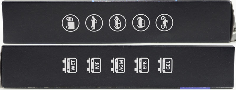 外盒包裝左右側面標示支援電池種類及車輛種類