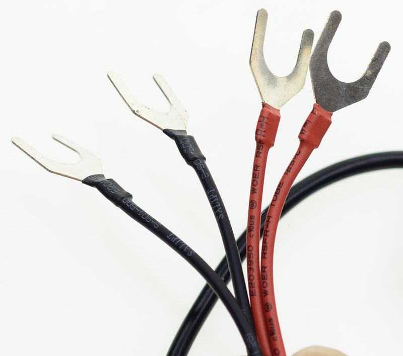 正負極測試線每條長度22公分,因為採四線式量測法,所以紅線與黑線各有兩個Y型端子