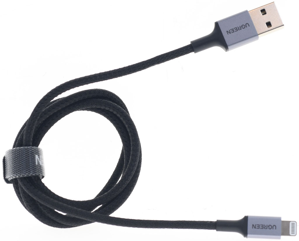 ▼Lightning接頭的陽極處理鋁合金外殼其中一面有UGREEN綠聯商標,並具備SR護套。使用原廠C89晶片Lightning接頭