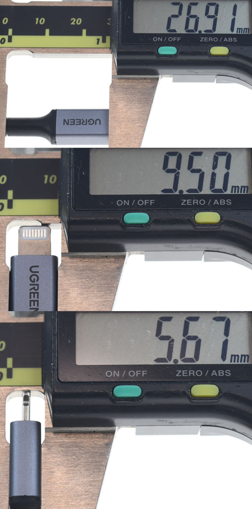 ▼Lightning接頭的尺寸為26.9x9.5x5.7mm