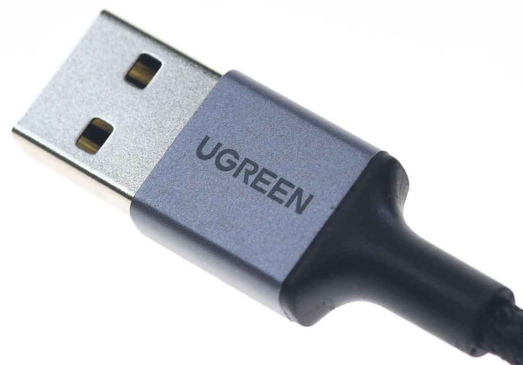 ▼USB-A接頭的陽極處理鋁合金外殼其中一面有UGREEN綠聯商標,並具備SR護套