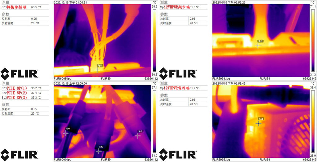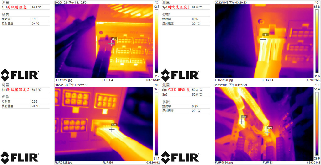 ▼執行FURMARK 30分鐘後,觀察電源端8P模組化插頭及顯示卡端12VHPWR插頭的溫度