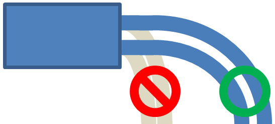 ▼同時整線時,不要直接在插頭端強行彎折線路,要讓線路轉彎處角度平緩轉向,避免拉扯插頭內部金屬連接器導致接觸不良