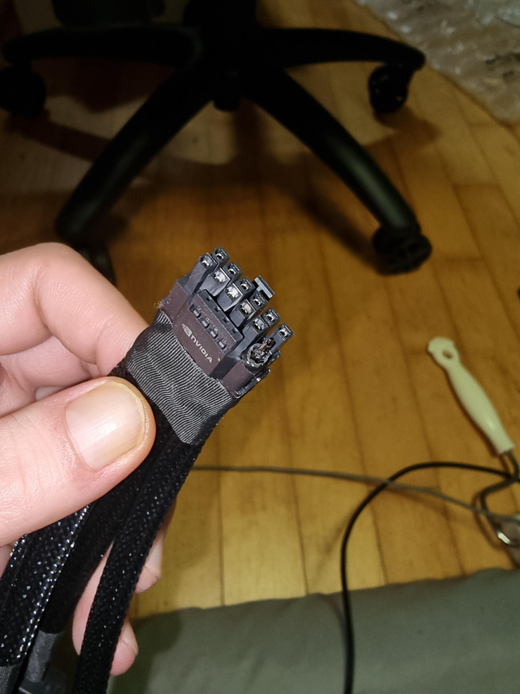 GEFORCE RTX 4090開賣一陣子後,美國reddit討論區一位擁有GIGABYTE GEFORCE RTX 4090 Gaming OC的玩家,發生了顯示卡插座與轉接線插頭熔毀的現象,並將其燒毀的照片發表在的NVIDIA子板。該玩家在討論區表示,是在進行遊戲(Red Dead Redemption 2)中發生狀況,雖然目前顯示卡看起來還可運作,但該名玩家已經提出RMA