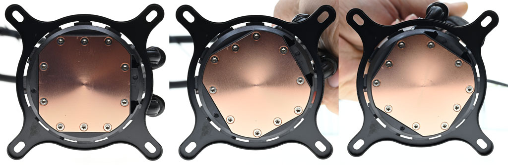 ▼下面是水冷頭在AMD托架上不同安裝角度示意圖