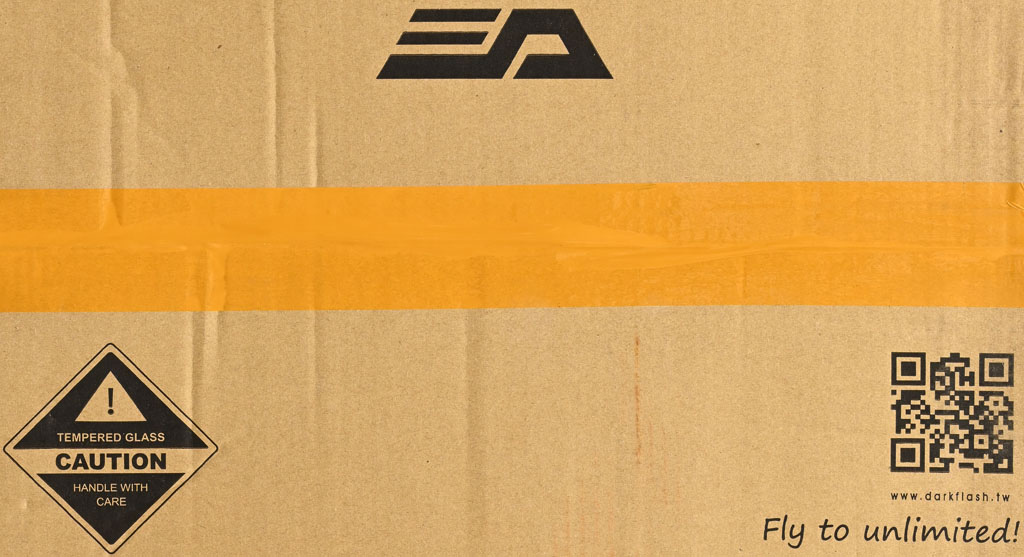 ▼外箱頂部有商標、強化玻璃小心輕放注意標誌、QR碼連結、原廠網址、標語