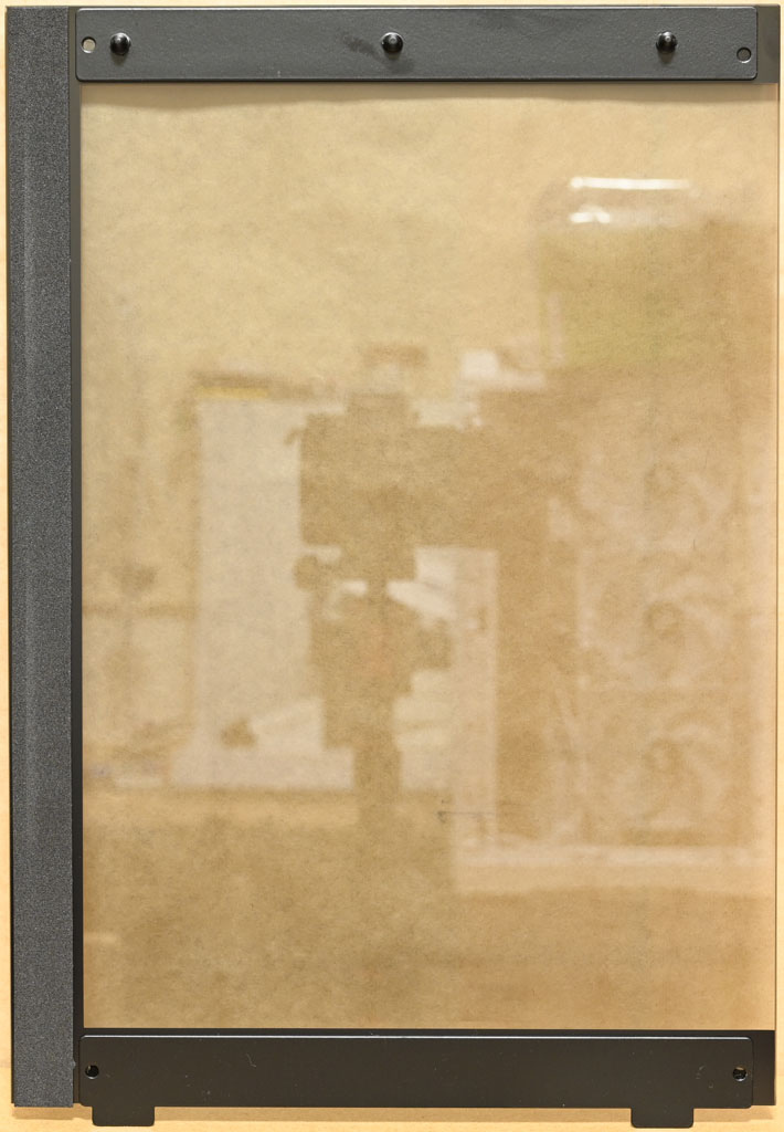▼強化玻璃側板背面上/下邊緣有金屬條,上方金屬條有3個固定用球狀卡榫,下方金屬條有2個插入卡榫