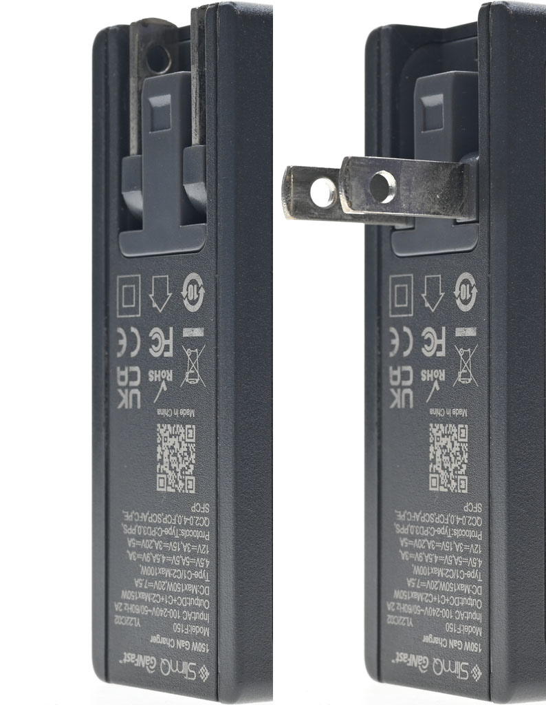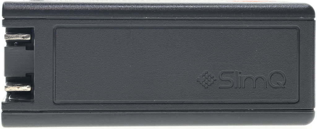 ▼充電器面積較小的側面外殼有商標及SlimQ字樣
