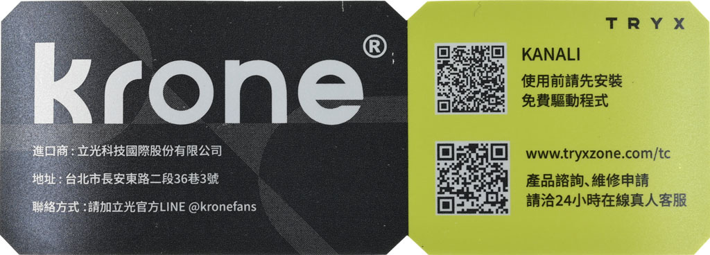 ▼台灣進口/代理商商標、聯絡資訊、KANALI下載QR碼連結、原廠網站QR碼連結