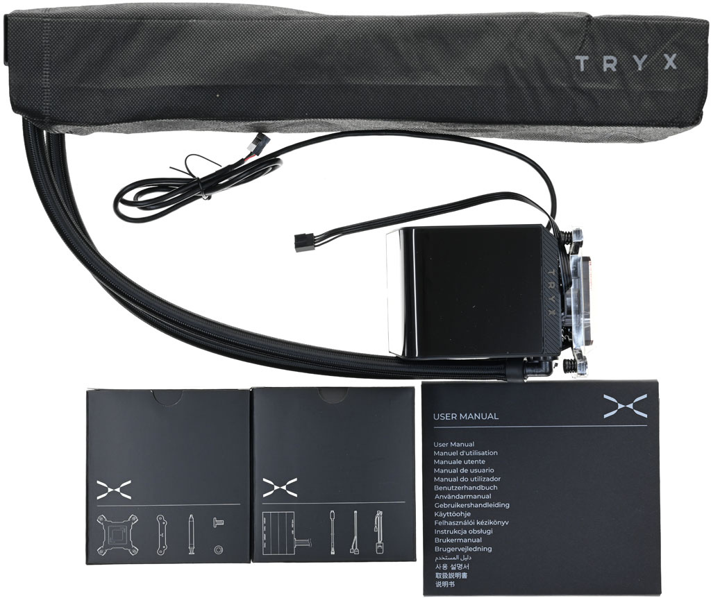 ▼包裝內容有一體式水冷散熱器、2個安裝配件盒、說明書封套