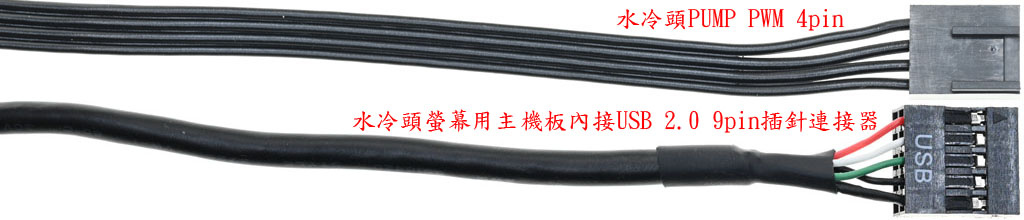 ▼水泵的PWM 4pin線路長度23.5公分,螢幕的主機板內接USB 2.0 9pin插針連接器線路長度93公分