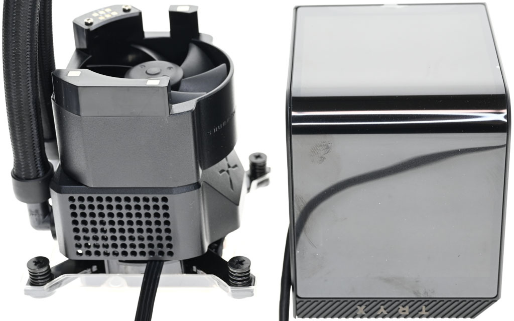 ▼水冷頭L形G2曲面螢幕下緣有TRYX字樣