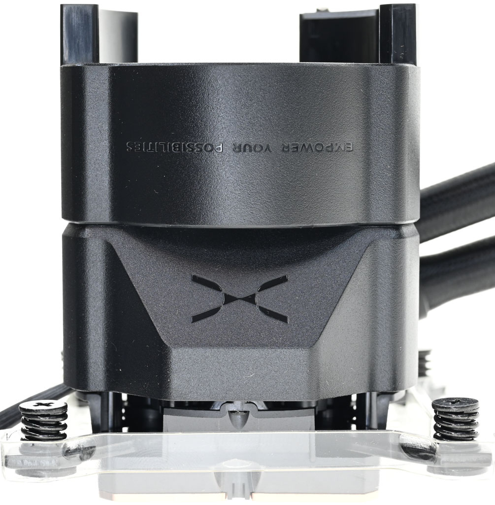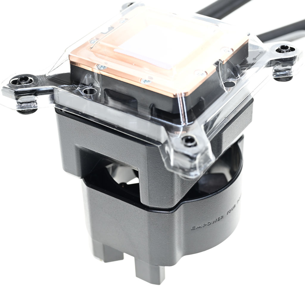 ▼去除螢幕的水冷頭,其中一個側面有EMPOWER YOUR POSSIBILITIES(增強你的潛力)及商標