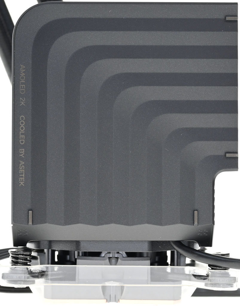 ▼水冷頭上側面有L形紋路,刻印AMOLED 2K及COOLED BY ASETEK文字