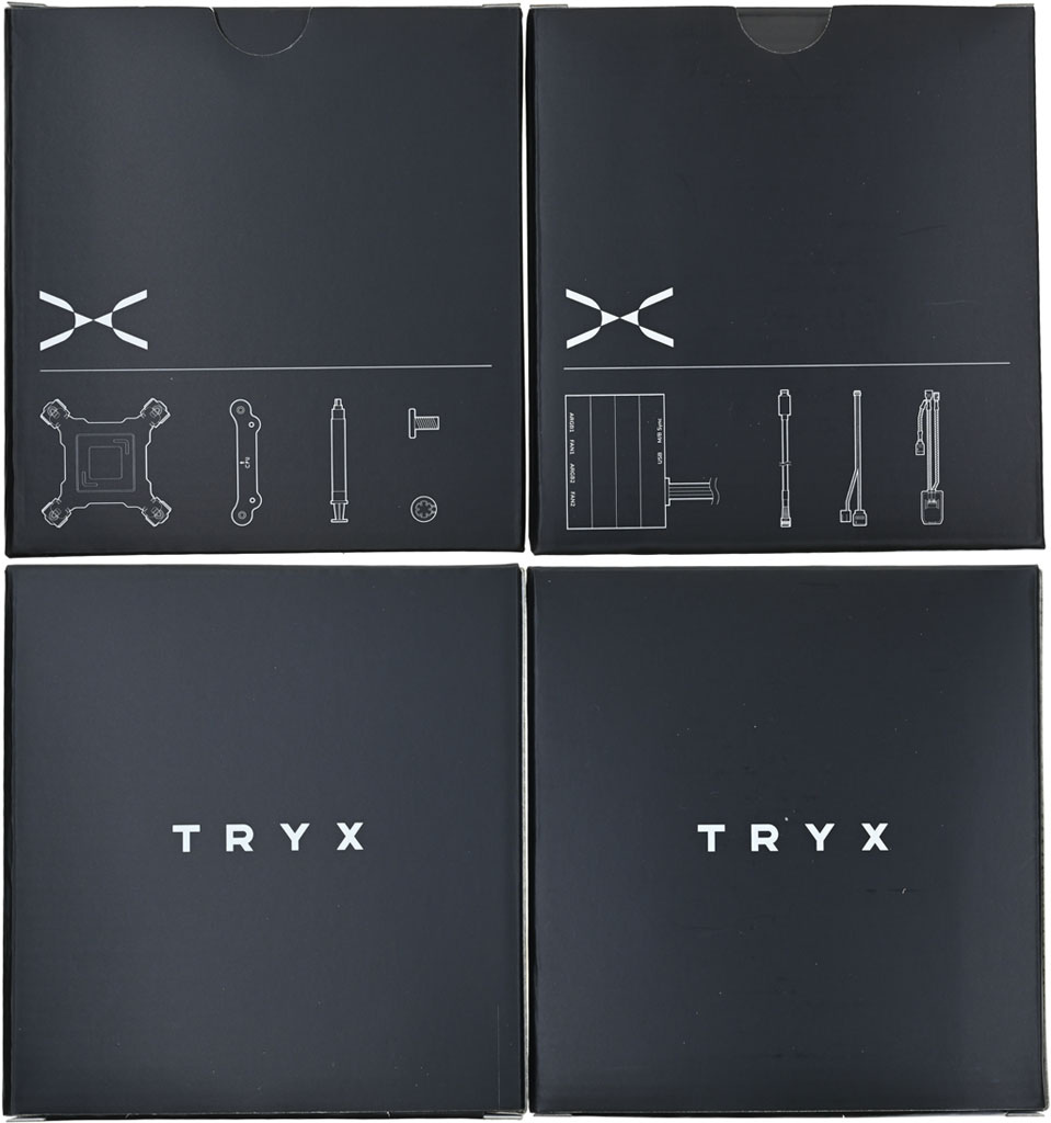 ▼2個安裝配件盒上面印上商標及內容物圖樣,另一面印上TRYX字樣