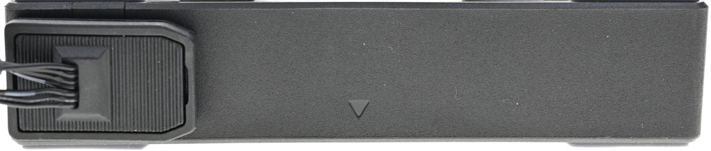 ▼風扇外框其中2個側面有造型,另外2個側面分別有6支彈簧針及6個方形觸點,用於風扇串接與連接線組