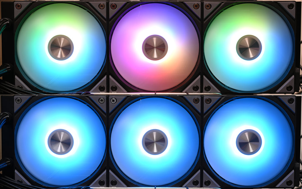 ●隨附3個FDB軸承ROTA SL ARGB發光風扇,扇葉軸心內藏燈光,風扇之間使用彈簧針及觸點串接,免接線,並使用專用磁吸線組接出PWM 4pin及ARGB 3pin,安裝簡易