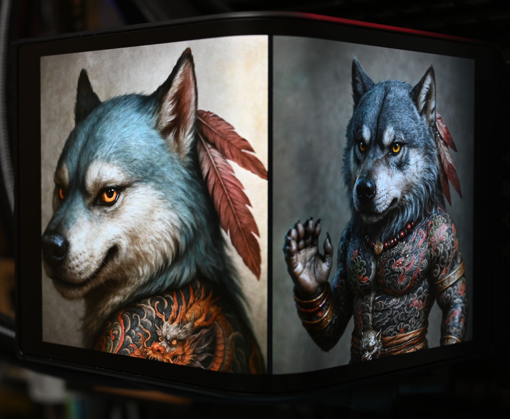 ▼水冷頭螢幕分屏顯示兩張自訂圖片的顯示效果: