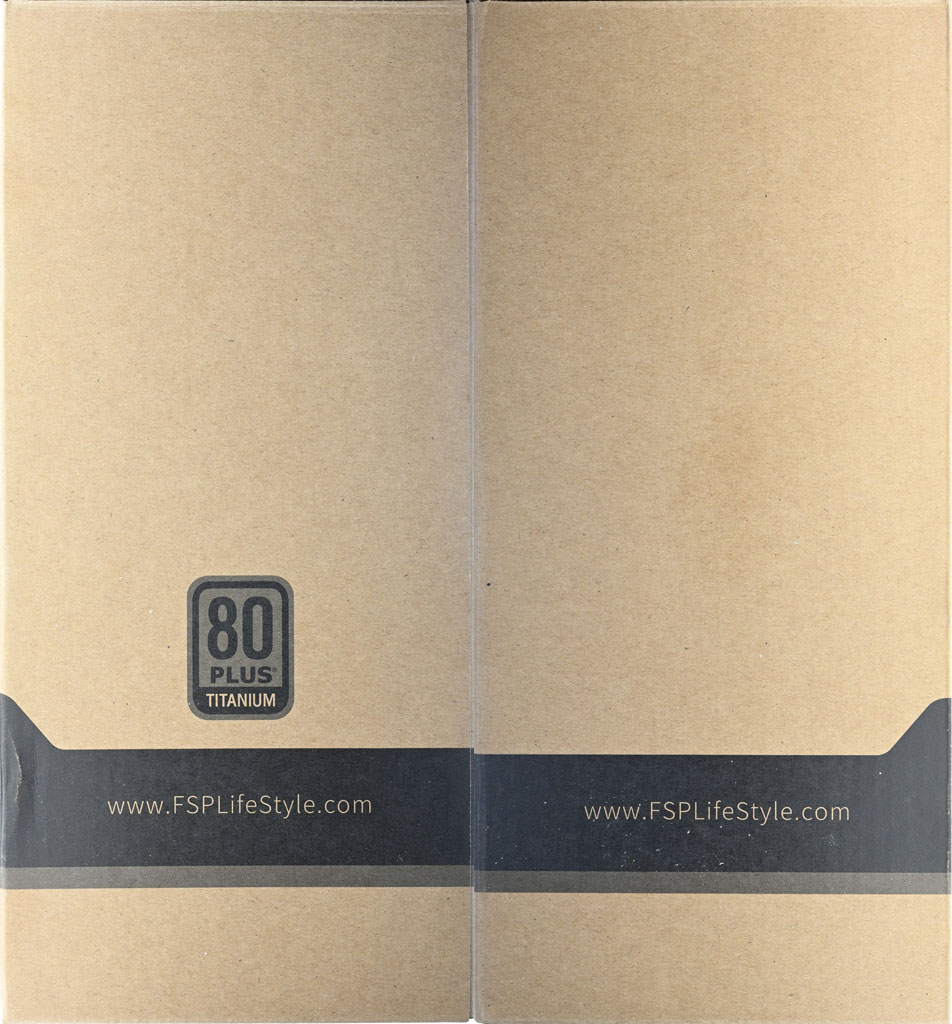 ▼外盒下側面有商標、輸出功率、電源線類型、條碼、名稱。外盒左側面有商標、多國語言"有關產品詳細規格,請瀏覽FSP官方網站"、外觀圖、原廠網站網址。外盒右側面有模組化線材數量/配置圖、接頭數量、使用手冊連結QR碼