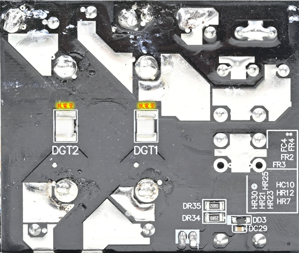 ▼主電路板背面焊點整體做工良好,部分大電流線路有敷錫