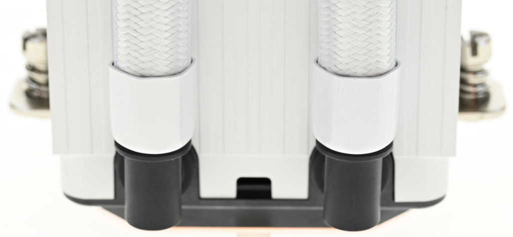 ▼水冷頭進/出水管直角接頭可小幅度左右旋轉,水管固定套管部分長度1.3公分