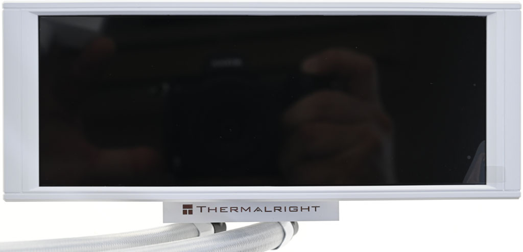 ▼水冷頭頂部螢幕尺寸187×72.3×21mm,6.86吋1280×480解析度LCD螢幕有保護貼,螢幕背面上方有THERMALRIGHT商標,背面下方有USB-C插座