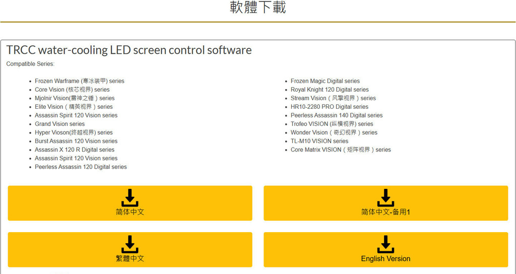▼至原廠網站下載TRCC(THERMALRIGHT CONTROL CENTER)軟體